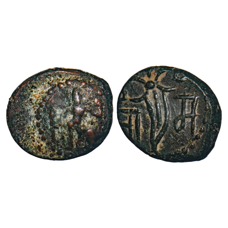 | Senji Marathas, (16th century), Raja Ram, Copper, 3.05g, 12.03x13.95mm, Obv: Standing Sri Rama, Rev: 'Ra' 'ma' separated by dagger. Very Fine+, Very Rare. |