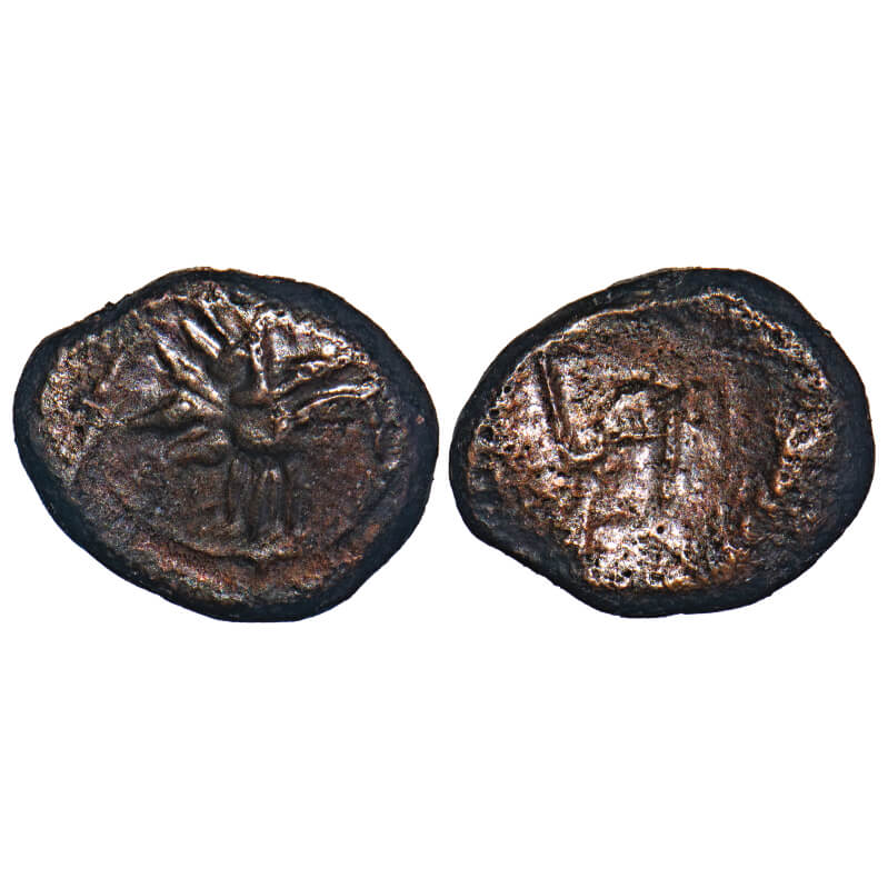 | Arcot Nawabs, Muhammad Ali (1749-95 AD), Copper Kasu , 2.09g, 10.22x12.48 mm, Obv: Standing Garuda with folded palms, Circular border around, Rev: Tamil legend ‘Na b/a bu’ partially seen. Ref: Ganesh, Coins of Tamil Nadu, 14.46, pg. 206. About Very Fine, Scarce. |
