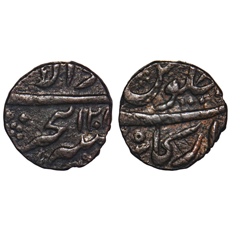 | Arcot Nawabs, Muhammad Ali (1749-95 AD), Walajah, AH 1208, Mint Arkat, Copper Half Paisa, 6.16g, 18.94x18.68 mm, Mint name clearly visible. Ref: Ganesh, Coins of Tamil Nadu, 14.86, pg. 216, . Very Fine, Very Scarce. |