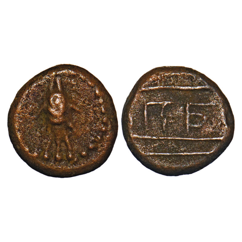 | Arcot Nawabs, Muhammad Ali (1749-95 AD), Copper Kasu, 2.90g, 13.00x12.61 mm, Obv: Fish, Dotted border around, Rev: Tamil Letter ‘Na’ and Nagari legend ‘Ba’, together reading ‘Naba’, short for ‘Nababu’. Ref: Unlisted in major publications. Very Fine, Very Scarce. |