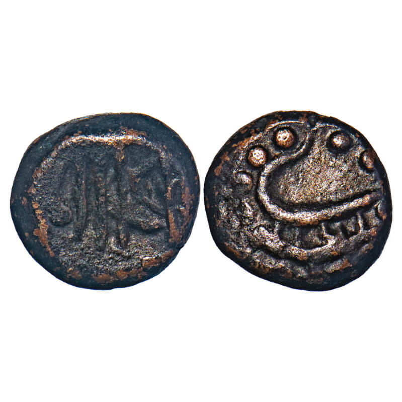 Arcot Nawabs, (18c AD), Copper Kasu fraction, 1.87g, 10.33x10.16 mm, Obv: Crude Persian legend ‘San...