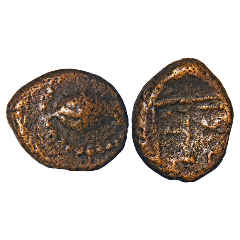 Arkat Nawabs, (17th century), Copper, 1.34g, 9.08x11.03mm, Obv: Fish within dotted Circle, Rev: 'Na babu' in Tamil. About Very Fine, Rare.