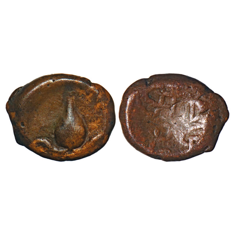 Nawabs of Arkat, (19th century), Copper, 1.60g, 11.73x12.95mm, Obv: flower pot within a circle. Rev...