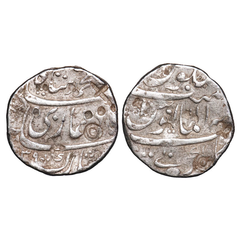 Muhammad Shah, Silver Rupee, 11.42g, Kankruti Mint in different style, al manus type with different shroff marks. KM 436.35. About Very Fine, Scarce.