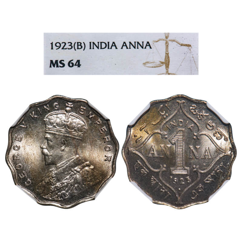 George V, Copper-Nickel, 1 Anna, 1923, Bombay Mint, Dot. F. Prid 951. GK 1151. NGC Slabbed MS 64. Extremely Rare.