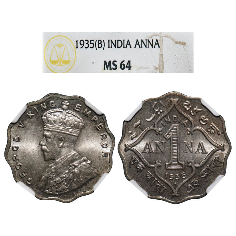 George V, Copper-Nickel, 1 Anna, 1935, Bombay Mint, Dot. F. Prid 957. GK 1166. NGC Slabbed MS 64. Very Rare.