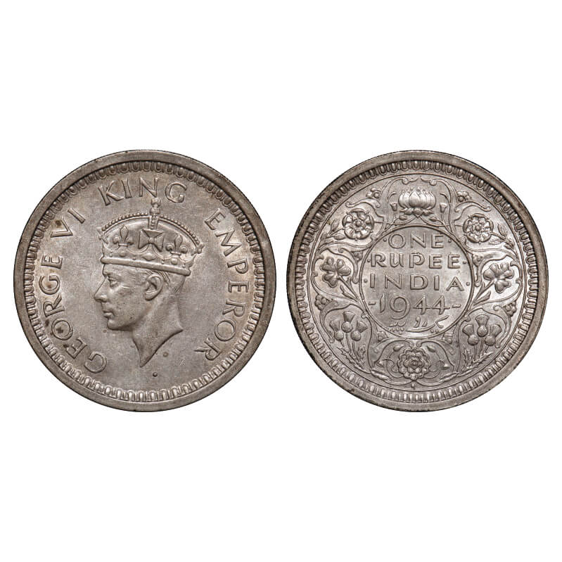 George VI, Half Silver, Rupee, 1944, Bombay Mint, D/II, Dot, Security edge. F. Prid 245. GK 1280. Extremely Fine. Scarce.