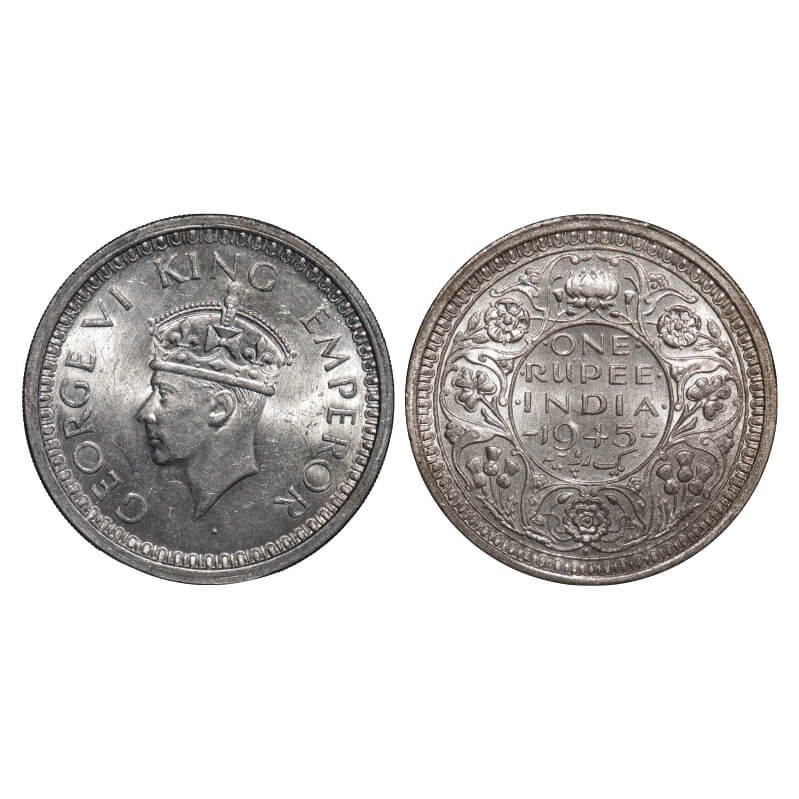 George VI, Half Silver, Rupee, 1945, Lahore Mint, D/II, 'L' raised, Security edge, Normal 5, Thick ...
