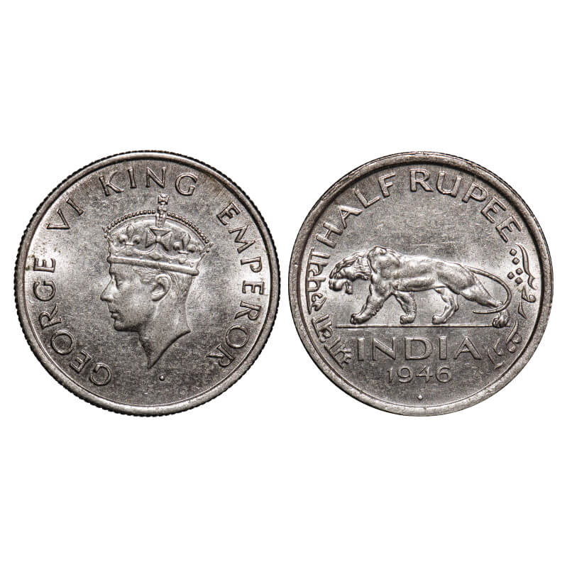 George VI, Nickel, Half Rupee, 1946, Bombay Mint, C/IV, Diamond, Head Type II, Milled edge. F. Prid 866. GK 1321. Extremely Fine. Scarce.