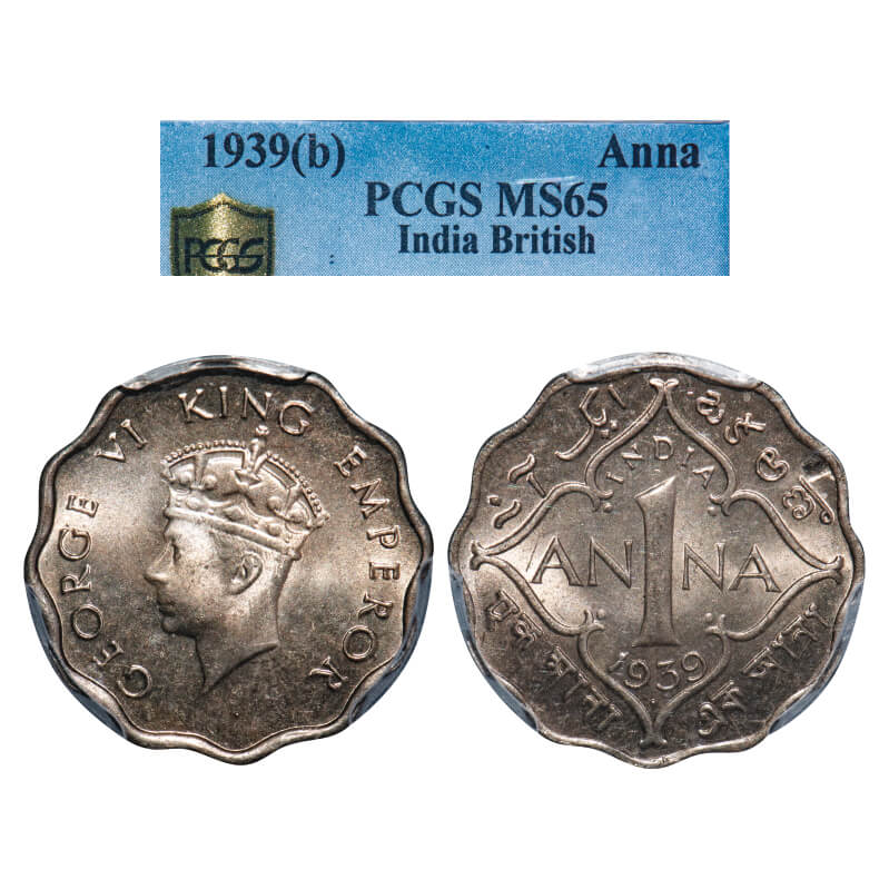 George VI, Copper-Nickel, 1 Anna, 1939, Bombay Mint, Head Type I, Dot. F. Prid 972. GK 1379. PCGS Slabbed MS 65. Extremely Rare. ( Only 1 coin graded higher by NGC and 5 by PCGS in this category till 1/3/2025)