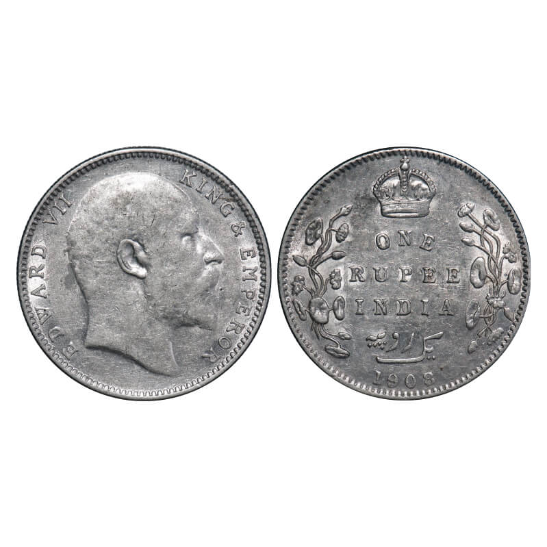 Edward VII, Silver, Rupee, 1908, Bombay Mint, 'B' incused and dot, Numeral 8 struck on numeral 7. F...