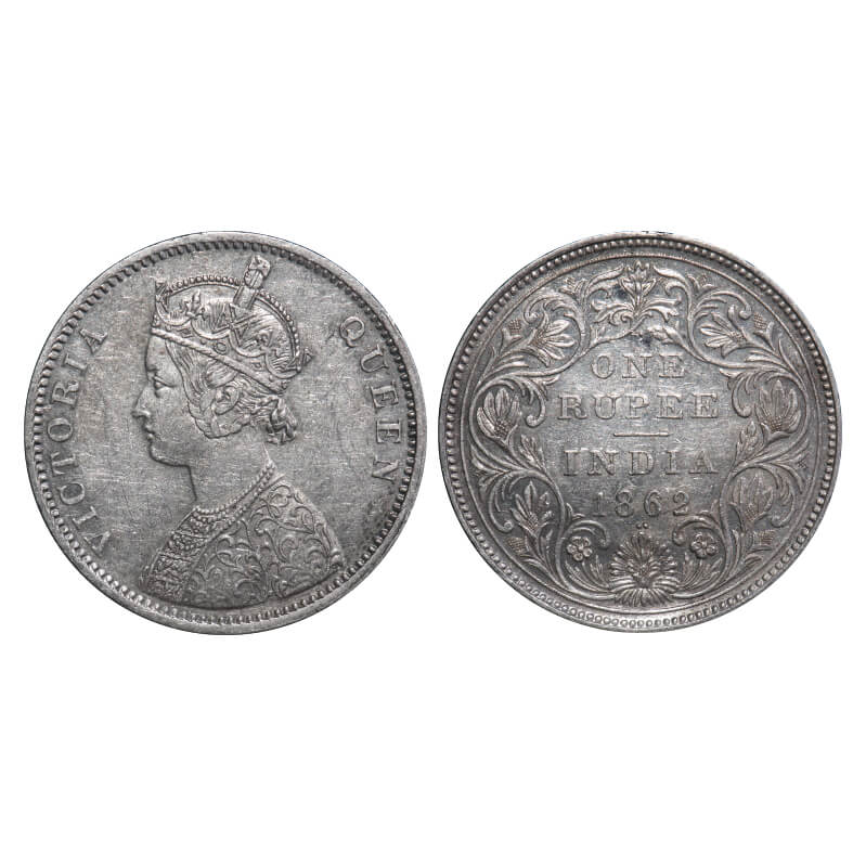 Victoria Queen, Silver, Rupee, 1862, Bombay Mint, A/II/1/2, With initial 'J'. F. Prid 103. GK 357. About Uncirculated. Very Scarce.