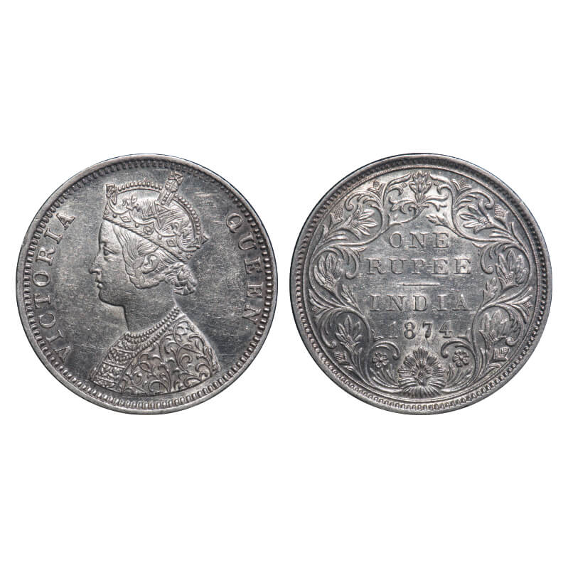 Victoria Queen, Silver, Rupee, 1874, Bombay Mint, C1/II, No dot, Normal numeral 4. F. Prid 141. GK 406. Almost Uncirculated. Rare.