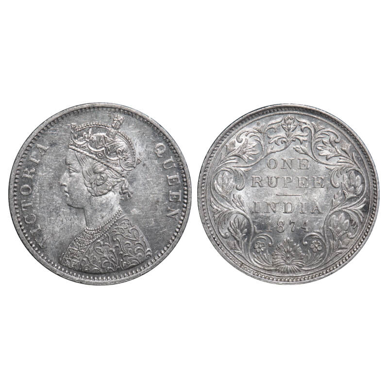 Victoria Queen, Silver, Rupee, 1874, Bombay Mint, A2/II, No dot, Broken numeral 4. F. Prid 142. GK 411. Uncirculated. Very Scarce.