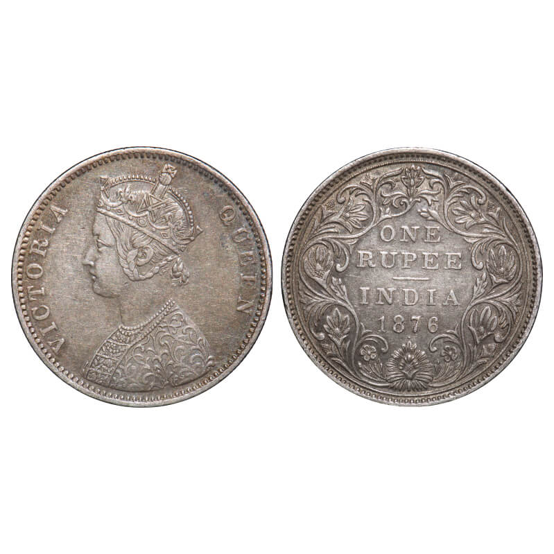 Victoria Queen, Silver, Rupee, 1876, Calcautta Mint, A1/I, No mint mark. F. Prid 114. GK 433. Uncir...