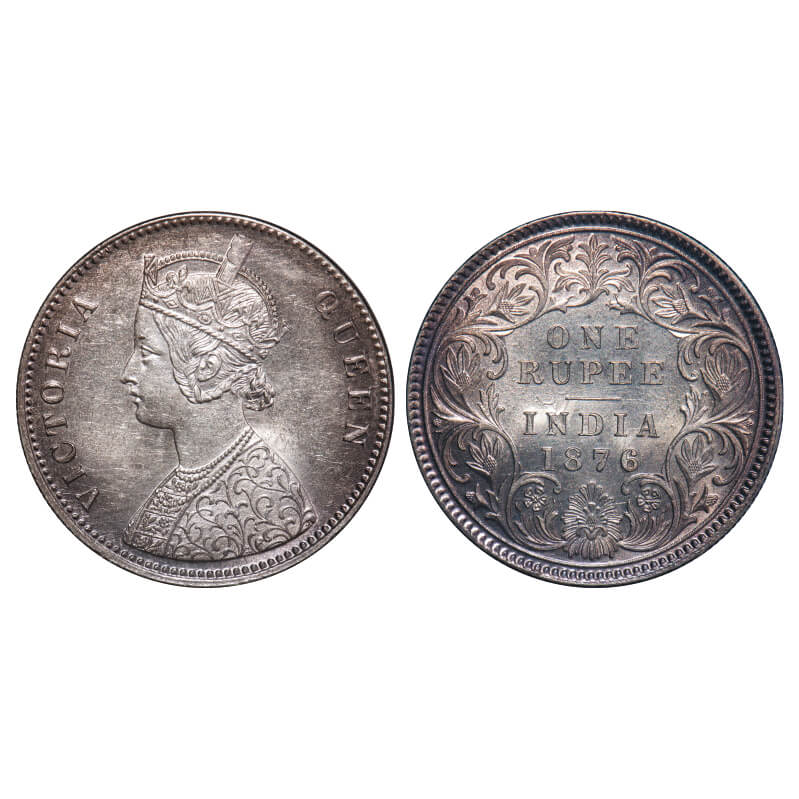 Victoria Queen, Silver, Rupee, 1876, Calcautta Mint, A1/I, No mint mark. F. Prid 114. GK 433. Uncirculated. Rare.