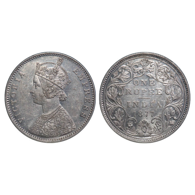 Victoria Empress, Silver, Rupee, 1877, Bombay Mint, A2/II, Dot. F. Prid 149. GK 435. Uncirculated. Very Scarce.