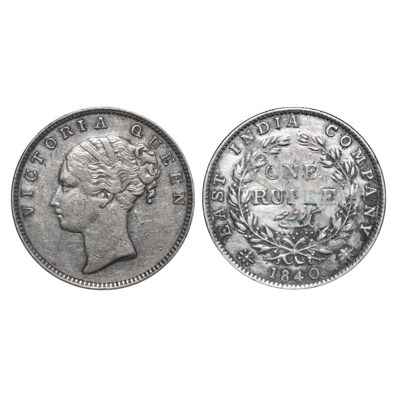 | Victoria Queen, Silver, Rupee, 1840, CL, Madras Mint, A/IV, 'S' incused, English Head, With bud above 'O' of One & Two leaves above 'E' of One, Wreath with 19 Berries (10L + 9R). F. Prid 45. GK 102. Extremely Fine, Details. Very Scarce. |