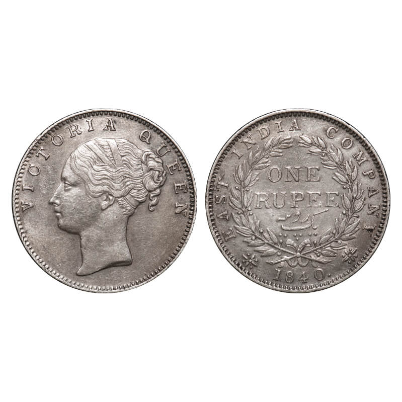 | Victoria Queen, Silver, Rupee, 1840, CL, Bombay Mint, A/I, English Head, With bud above 'O' & 'E' of One, Wreath with 19 Berries (10L + 9R). F. Prid 51. GK 113. Extremely Fine+. Very Scarce. |