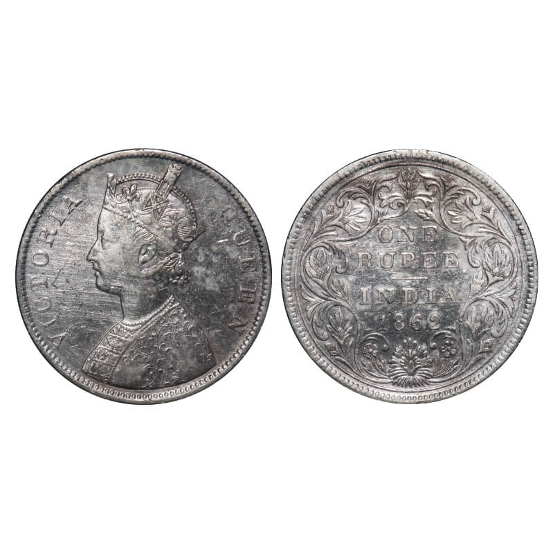Victoria Queen, Silver, Rupee, 1862, Calcutta Mint, B/II, Embroidery in high relief. F. Prid 55. GK 241. Extremely Fine. Rare.