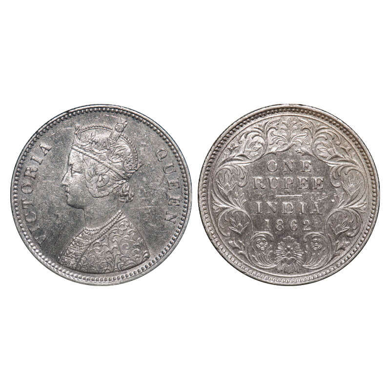 Victoria Queen, Silver, Rupee, 1862, Calcutta Mint, A/I, With initial 'J', Round Pearls on the Crown. F. Prid. 66. GK 255. Extremely Fine+. Very Scarce.