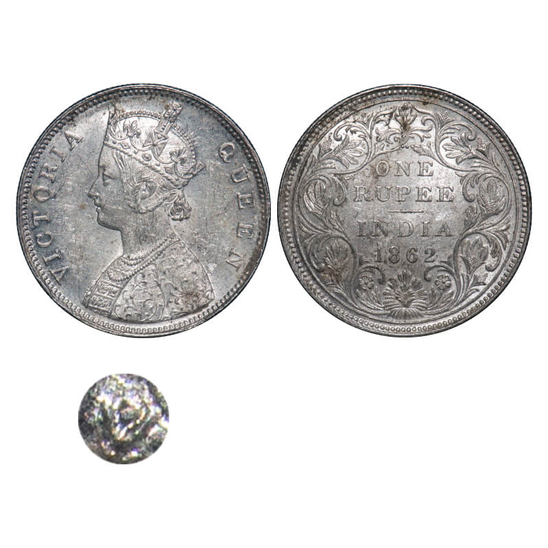 Victoria Queen, Silver, Rupee, 1862, Bombay Mint, B/II/2/0, Double struck 'V' at bottom base line on the bust at Obv. F. Prid 71. GK 287. Uncirculated. Rare.