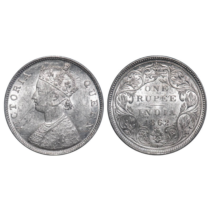 Victoria Queen, Silver, Rupee, 1862, Bombay Mint, B/II/0/3. F. Prid 77. GK 300. Uncirculated. Very Scarce.
