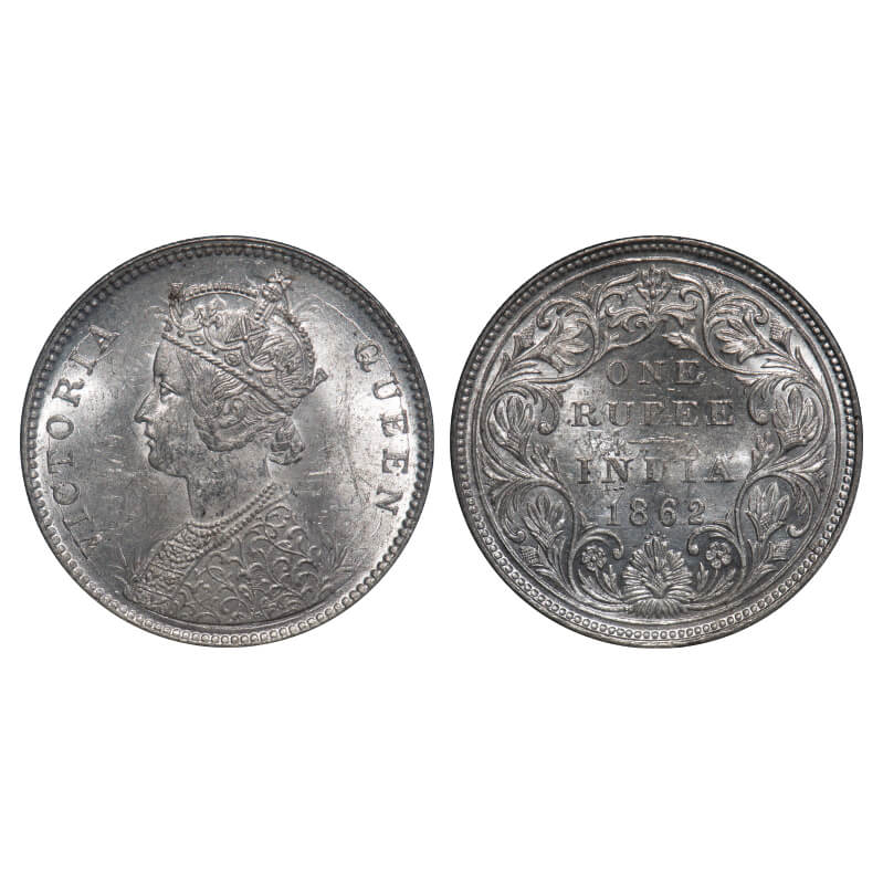 Victoria Queen, Silver, Rupee, 1862, Bombay Mint, A/II/0/4, w/o initial 'J'. F. Prid 79. GK 308. Uncirculated with luster. Very Scarce.