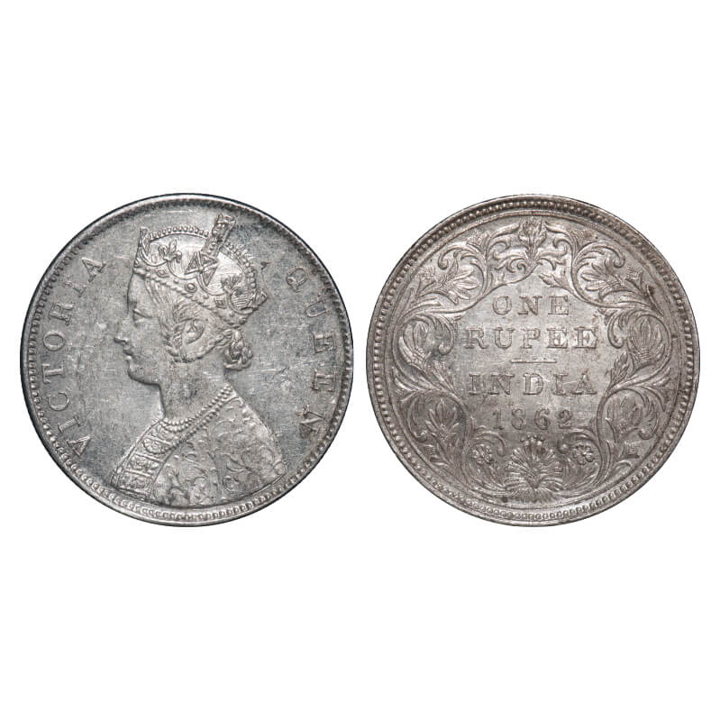 Victoria Queen, Silver, Rupee, 1862, Bombay Mint, A/II/2/4, Re used of earlier Rev dies w/o erasing...