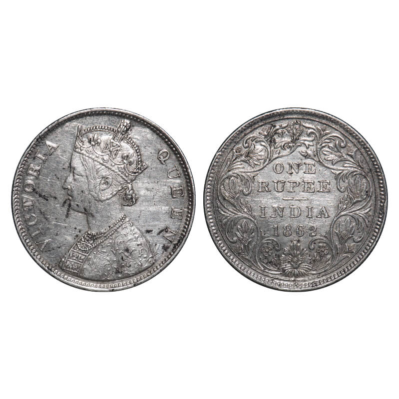 Victoria Queen, Silver, Rupee, 1862, Bombay Mint, A/II/0/6, w/o bottom stroke of numeral 1, w/o ini...