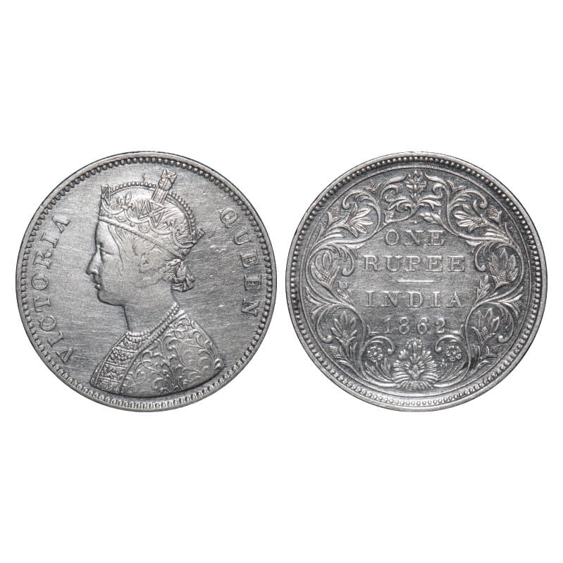 Victoria Queen, Silver, Rupee, 1862, Bombay Mint, A/II/1/10, w/o initial 'J', Dot above 'N' of One. F. Prid Unlisted. GK 340. Very Fine+. Rare.