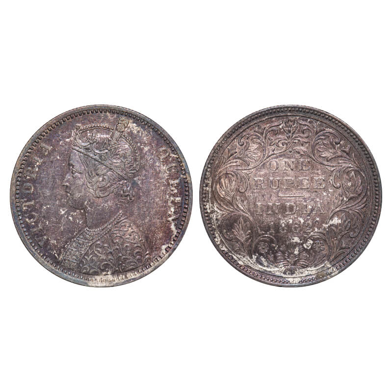Victoria Queen, Silver, Rupee, 1862, Bombay Mint, A/II/1/2, With initial 'J'. F. Prid 103. GK 357. Almost Uncirculated, Toned. Very Scarce.
