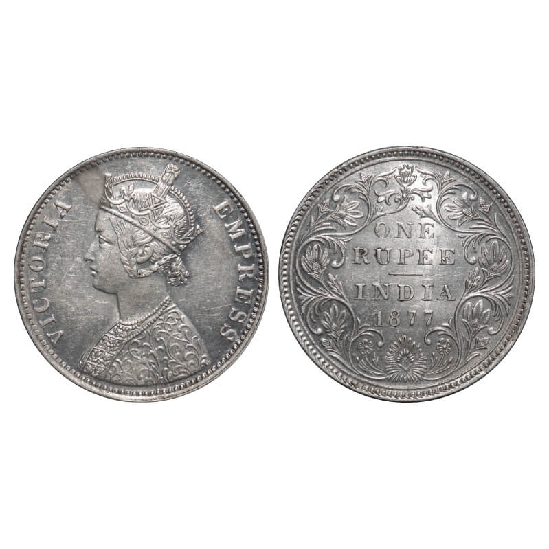 Victoria Empress, Silver, Rupee, 1877, Bombay Mint, A3/II(i), Dot, Thin numeral 77. F. Prid Unliste...