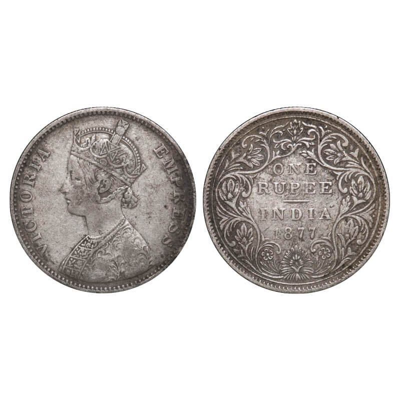 Victoria Empress, Silver, Rupee, 1877, Bombay Mint, A3/II(i), Dot, Thin numeral 77. F. Prid Unliste...