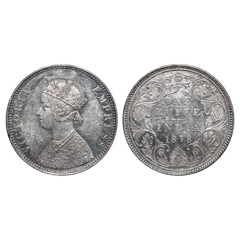 Victoria Empress, Silver, Rupee, 1878, Bombay Mint, A3/II(i), Dot. F. Prid 151. GK 451. Uncirculated with luster. Very Scarce.