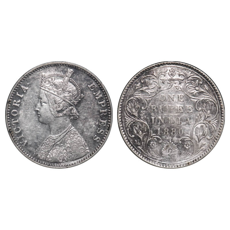 Victoria Empress, Silver, Rupee, 1880, Bombay Mint, A3/II(iv), Dot, Slant 1 mentioned on the slab. ...
