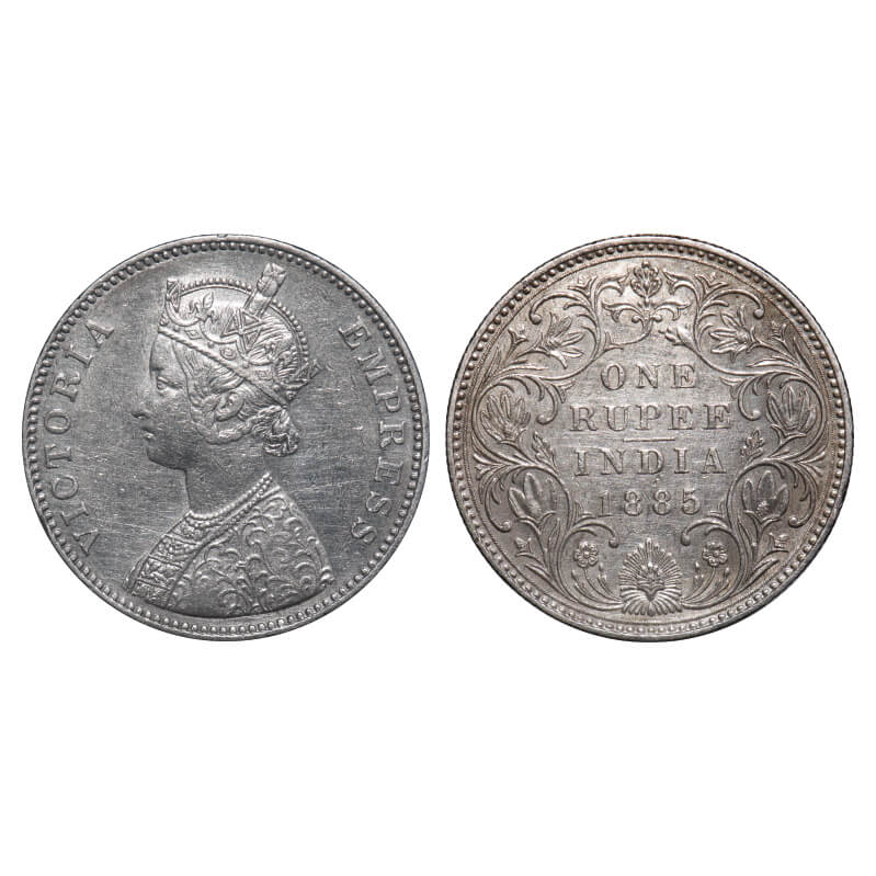 Victoria Empress, Silver, Rupee, 1885, Bombay Mint, A3/II(iv), 'B' incused. F. Prid Unlisted. GK 500. Extremely Fine+. Rare.