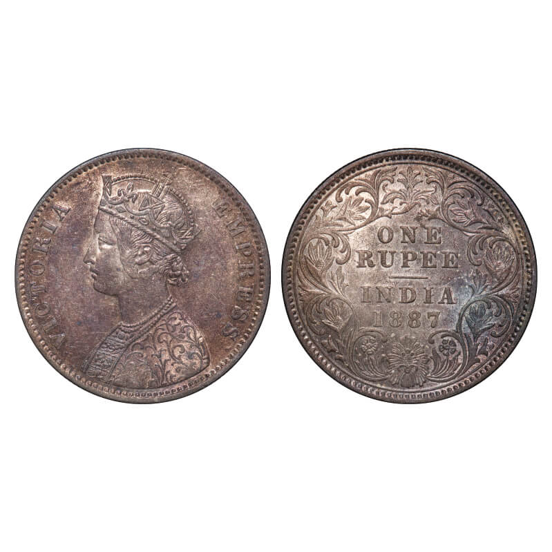 | Victoria Empress, Silver, Rupee, 1887, Calcutta Mint, A4/I(i), 'C' incused, Thick numeral 7. F. Prid 127. GK 547. About Uncirculated, Toned. Very Scarce. |