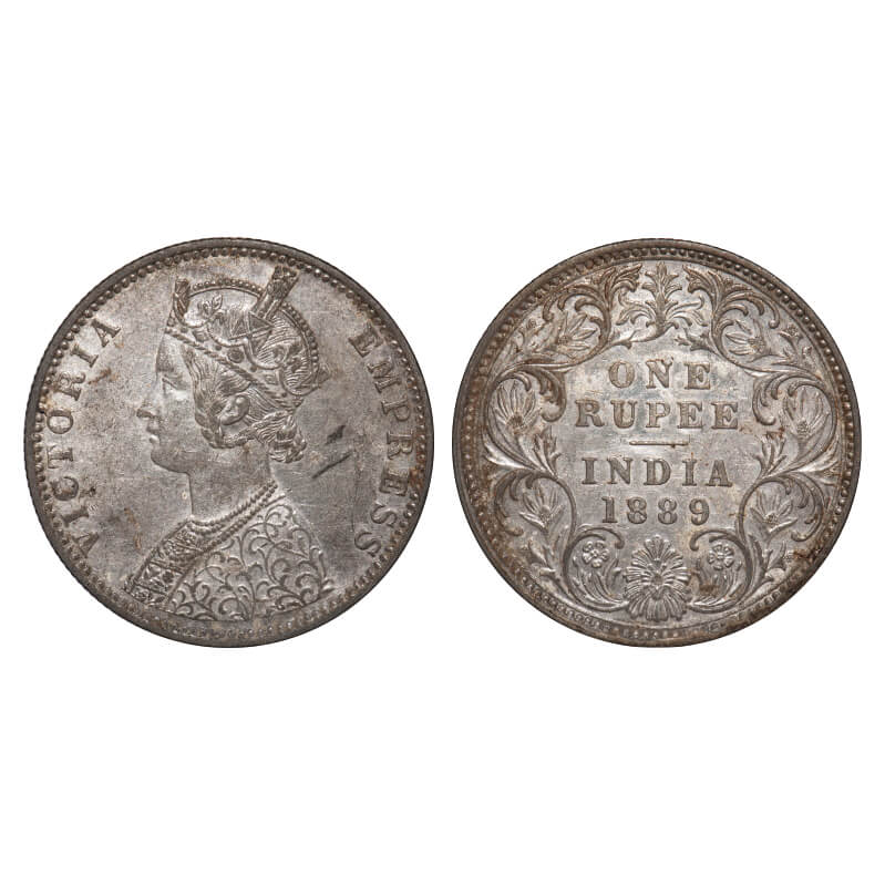 Victoria Empress, Silver, Rupee, 1889, Bombay Mint, C2/I, 'B' incused. F. Prid 177. GK 564. Uncircu...