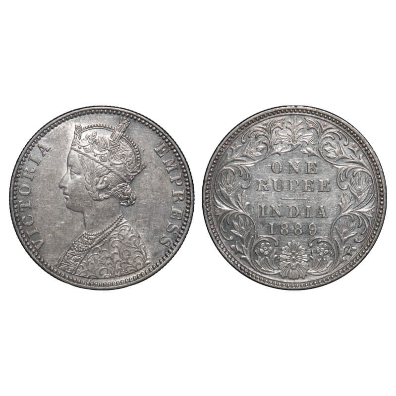 Victoria Empress, Silver, Rupee, 1889, Bombay Mint, C2/I, 'B' incused. F. Prid 177. GK 564. Uncirculated. Very Scarce.