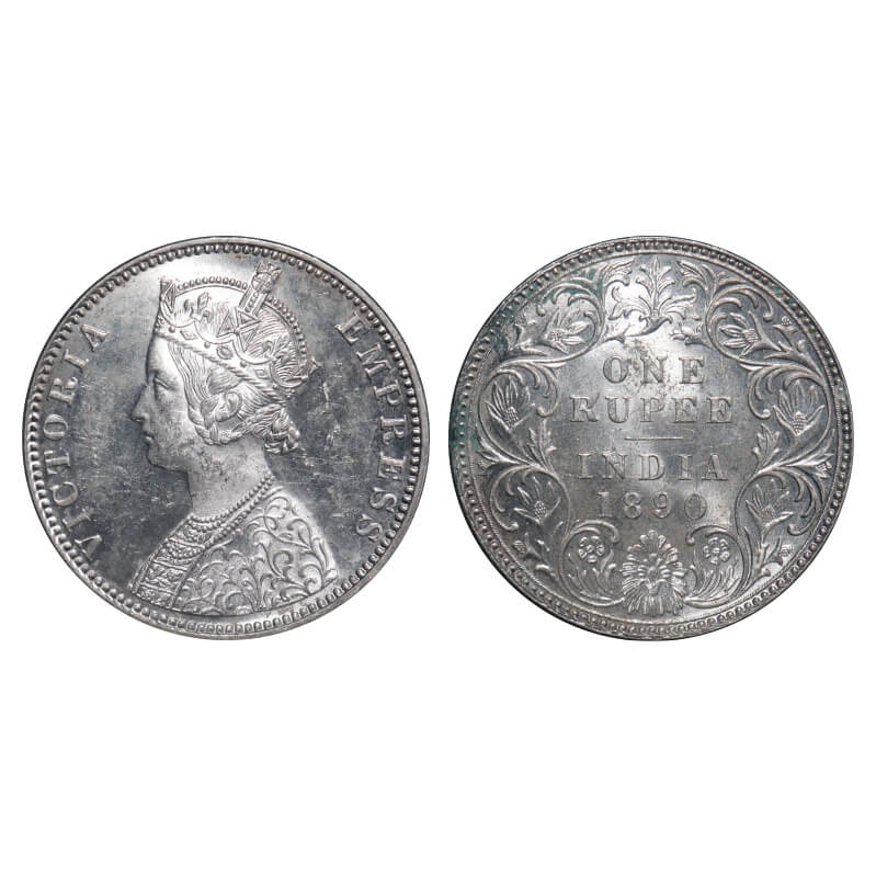 Victoria Empress, Silver, Rupee, 1890, Bombay Mint, C2/I, 'B' incused. F. Prid 178. GK 566. Mint State with luster. Rare.
