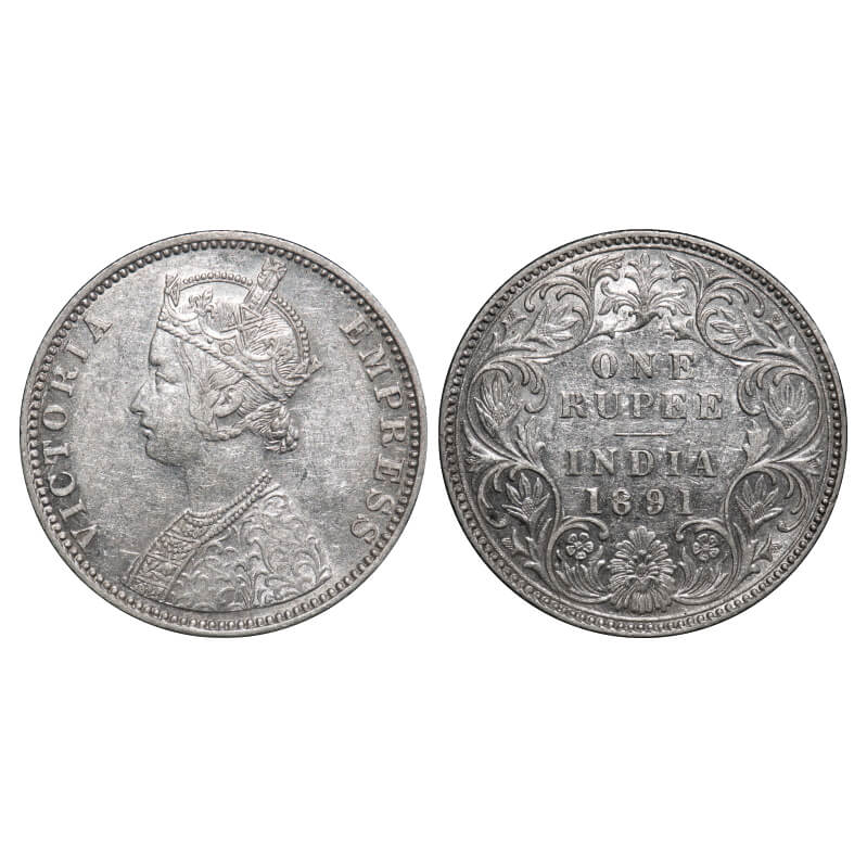 Victoria Empress, Silver, Rupee, 1891, Bombay Mint, C2/I, 'B' incused. F. Prid 179. GK 569. About Uncirculated. Very Scarce.