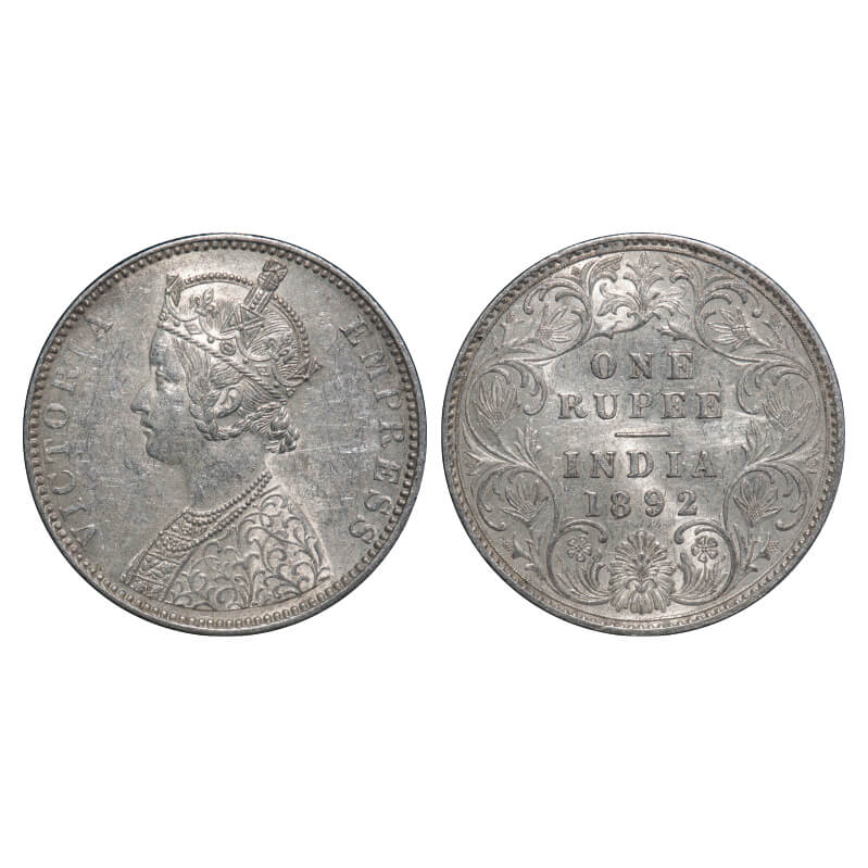 Victoria Empress, Silver, Rupee, 1892, Bombay Mint, C2/I, 'B' incused. F. Prid 181. GK 572. About Uncirculated. Very Scarce.