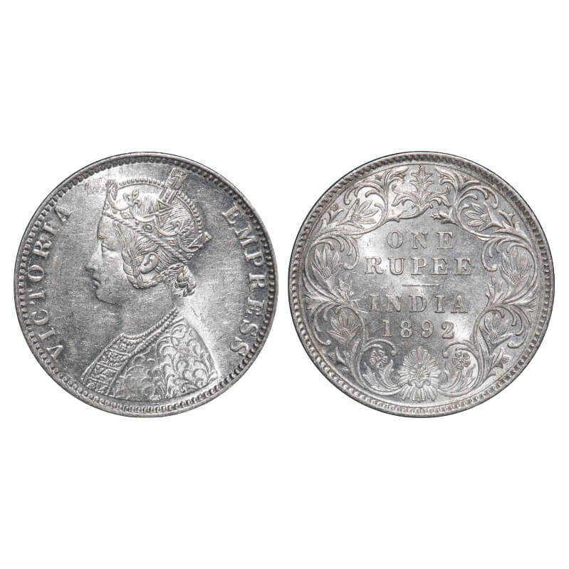 Victoria Empress, Silver, Rupee, 1892, Bombay Mint, C2/I(ii), 'B' raised. F. Prid 180. GK 575. Uncirculated. Rare.