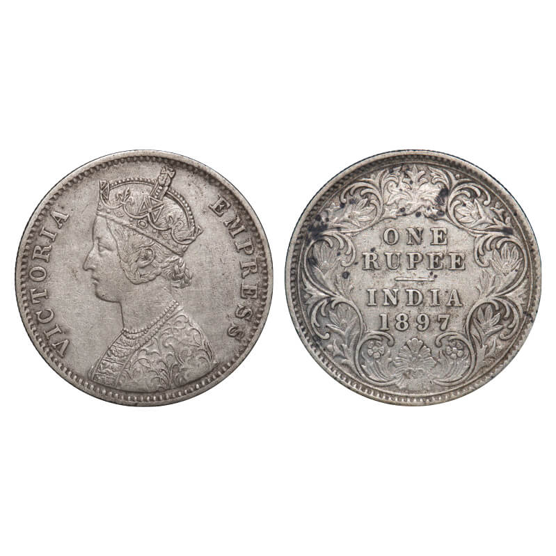 Victoria Empress, Silver, Rupee, 1897, Calcutta Mint, C3/I(i), 'C' incused. F. Prid 136. GK 582. Extremely Fine+. Very Rare.