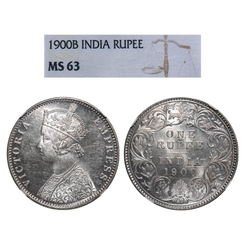 Victoria Empress, Silver, Rupee, 1900, Bombay Mint, A3(i)/I(ii), 'B' incused. F. Prid 186. GK 589. NGC Slabbed MS 63. Very Rare.