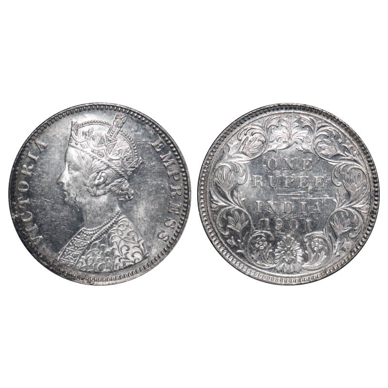 Victoria Empress, Silver, Rupee, 1901, Bombay Mint, C2/I, 'B' incused, Die crack on Obv. F. Prid 187. GK 592. Mint State with original mint luster. Rare.