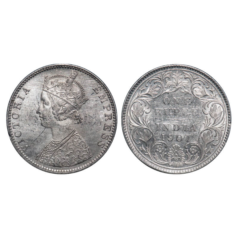 Victoria Empress, Silver, Rupee, 1901, Calcutta Mint, A4/I(i), 'C' incused, The Queen's jabot has 3...