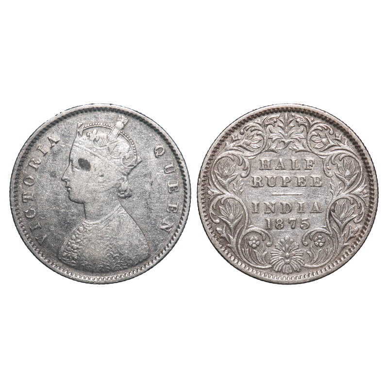 Victoria Queen, Silver, Half Rupee, 1875, Calcutta Mint, A/I, No mint mark F. Prid 260. GK 603.About Very Fine. Very Scarce.