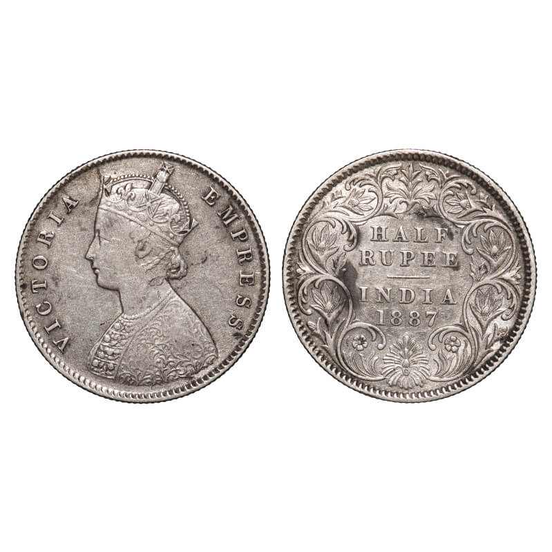 Victoria Empress, Silver, Half Rupee, 1887, Calcutta Mint, A/I, 'C' incused. F. Prid 271. GK 637. Very Fine+. Very Scarce.